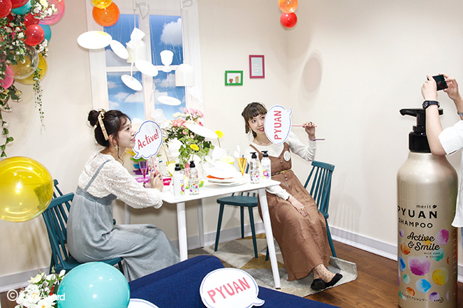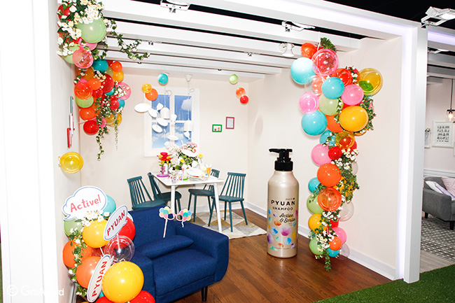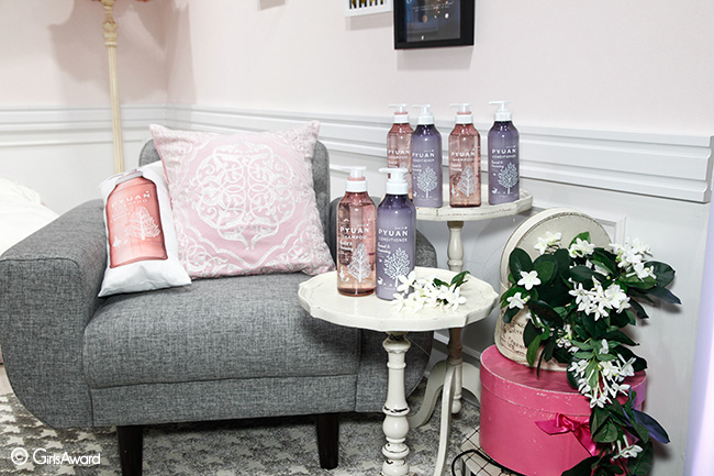 「PYUAN(ピュアン)」ブースでは、3つのシャンプーの世界が表現された部屋が登場! お気に入りの部屋で写真を撮ってinstagramに投稿で、シャンプーや部屋の家具がなど豪華賞品が当たる抽選を開催☆! さらに、ブース来場者には可愛いお花をプレゼントで、大人気のブースでした♡♫